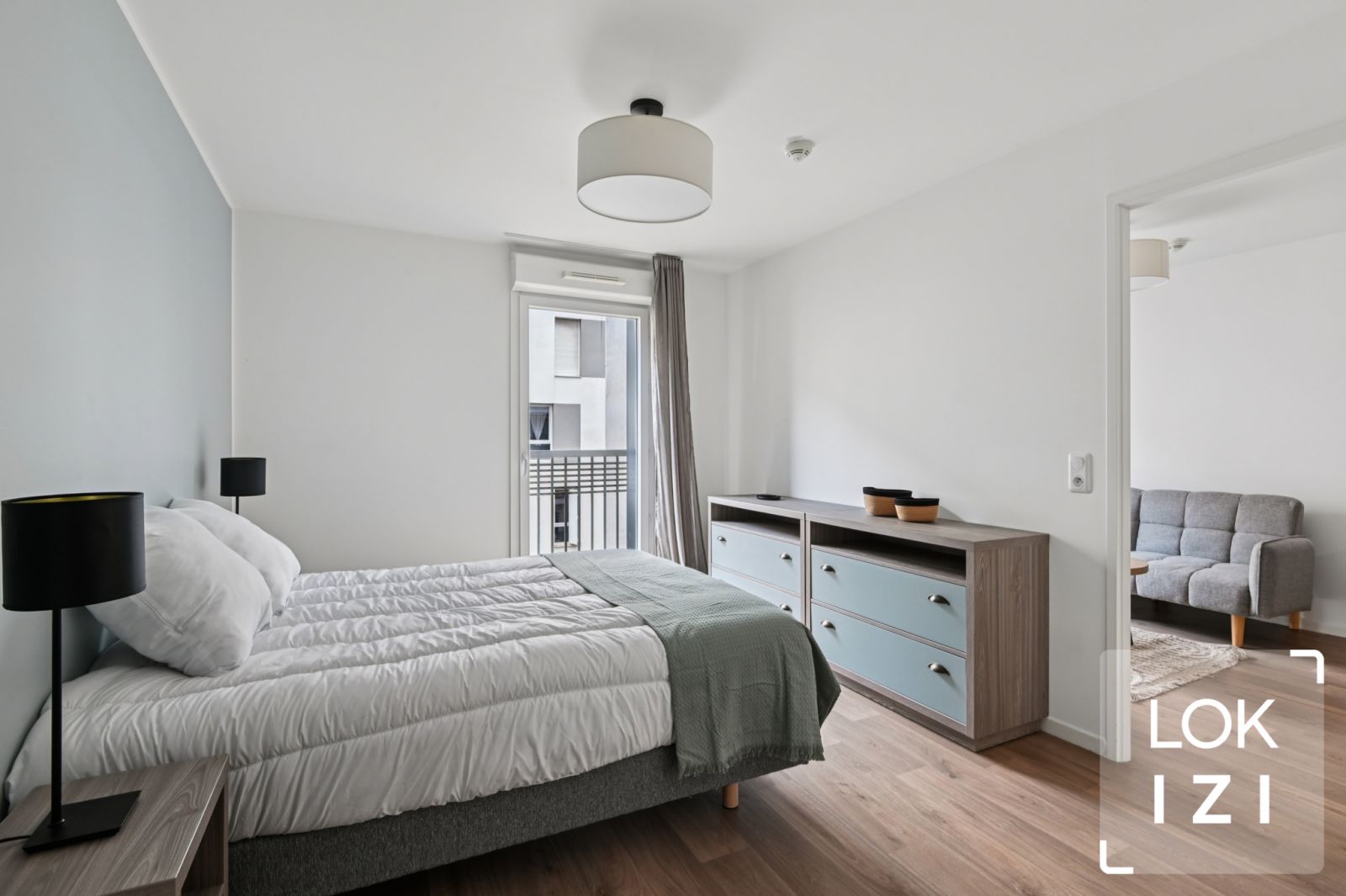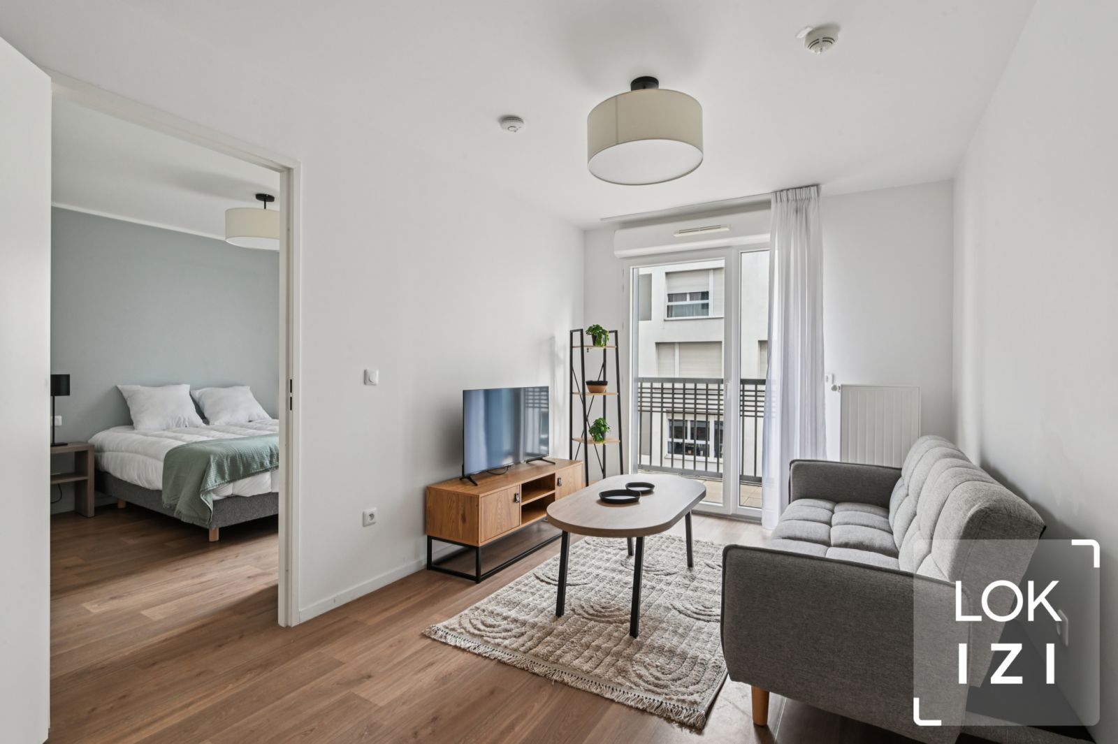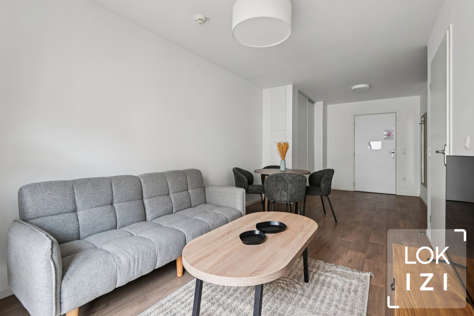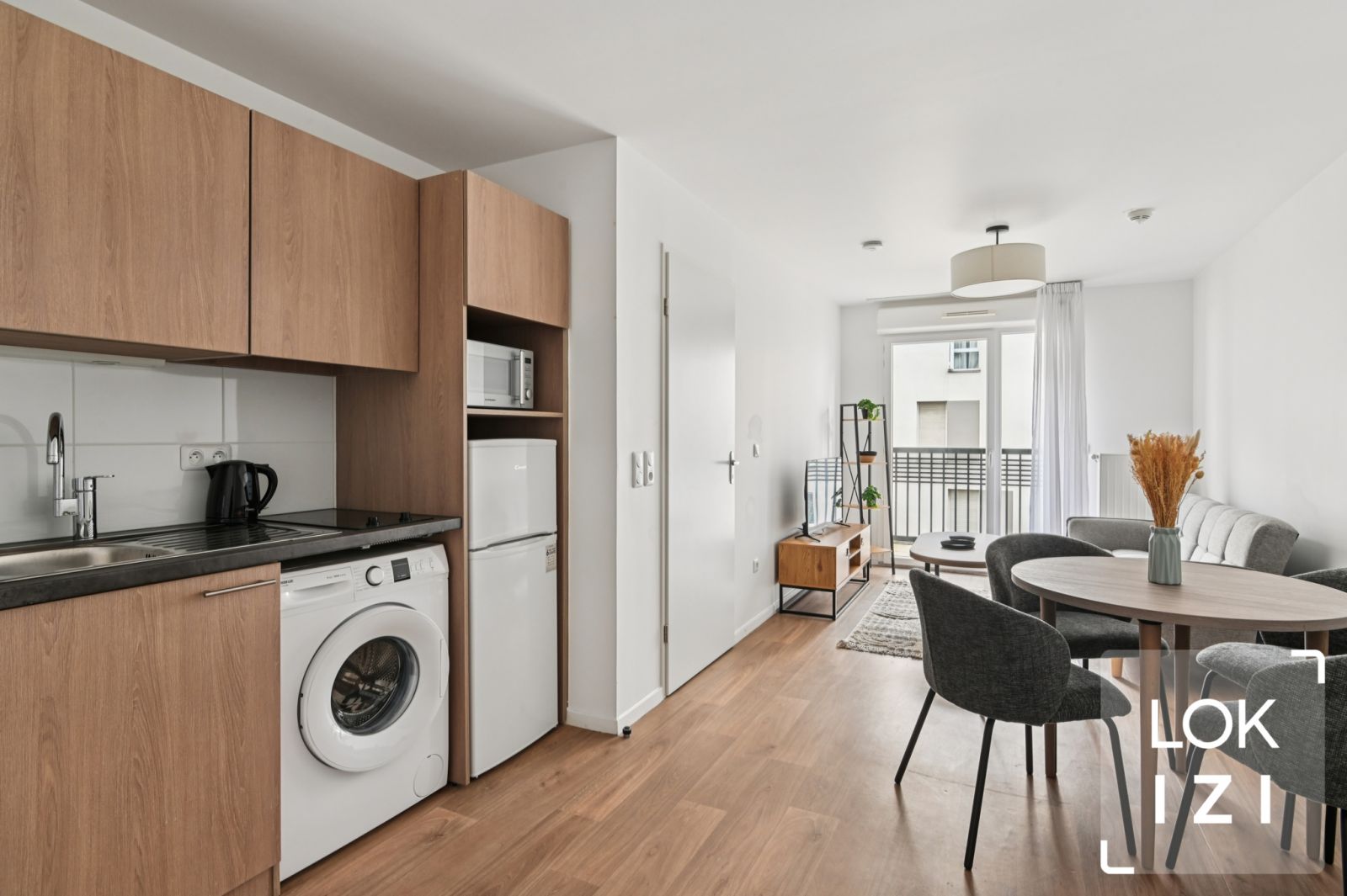 A Saint-Ouen, en bordure du nouvel éco-quartier des Docks et à 15mn du centre de Paris (métro 13/14), notre agence LOKIZI - La location meublée vous propose cet agréable et confortable appartement T2 de 39m² avec balcon, situé au 3ème étage d’un immeuble récent. L’appartement (fraîchement rénové) est entièrement meublé et équipé. Il se compose de : - entrée avec placard-penderie - séjour ouvert sur balcon avec espace salon (avec canapé convertible et TV) et espace repas - cuisine ouverte avec kitchenette (équipée de réfrigérateur-congélateur, micro-ondes, plaques de cuisson, kit vaisselle, petit électroménager, lave-linge) - chambre donnant sur balcon, avec lit double couchage et mobilier de rangement - salle d'eau attenante à la chambre avec douche PMR et WC.