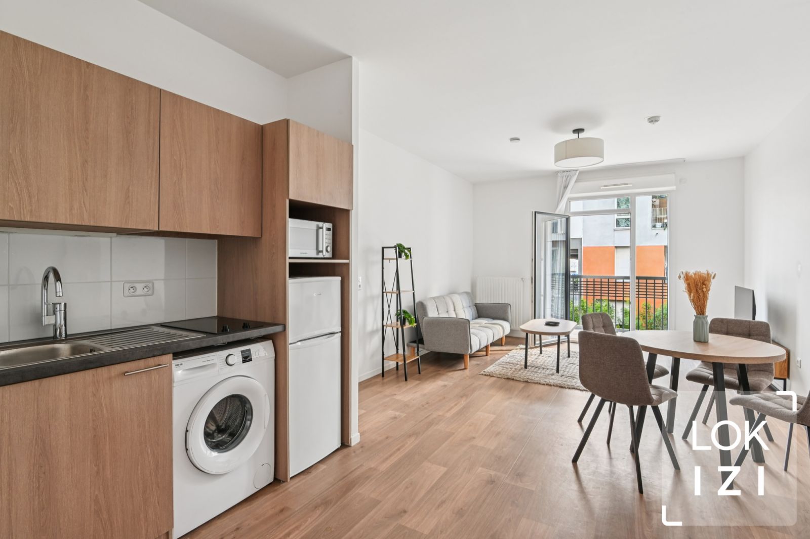 A Saint-Ouen, en bordure du nouveau quartier des Docks et à 15mn du cenyre de Paris en métro, notre agence LOKIZI - La location meublée vous propose ce spacieux et agréable appartement T2 de 46m² avec balcon, situé au 1er étage d’un immeuble récent.