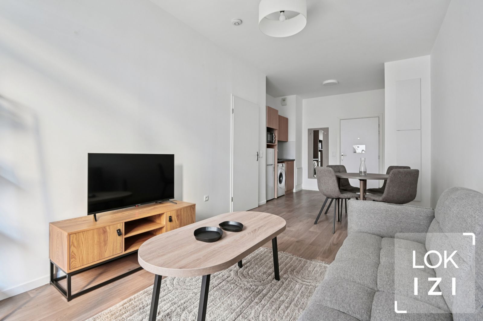 A Saint-Ouen, en bordure du nouveau quartier des Docks et à 15mn du centre de Paris en métro, notre agence LOKIZI - La location meublée vous propose ce lumineux et agréable appartement T2 de 40m² avec terrasse, situé au 1er étage d’un immeuble récent.