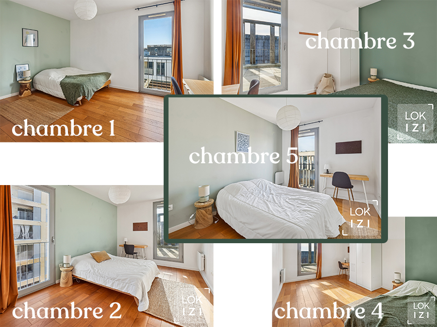 Chartrons, proche Tram B et Cité du Vin. COLIVING. Chambre meublée TOUTES CHARGES COMPRISES de 25m² dans spacieux appartement T6 de 116m² (soit 5 chambres) à l'esprit colocation, avec grande terrasse, situé au 6ème étage d'un immeuble récent (avec ascenseur), et comprenant : Partie privative (15,2m²) : chambre avec lit double couchage, bureau, dressing. Parties communes : salon-séjour (avec TV) prolongé d'une grande terrasse de 64m², avec espace repas-cuisine ouverte (équipée de réfrigérateur'congélateur, plaques de cuisson, four, lave-vaisselle, lave-linge, petit électroménager, kit vaisselle), 1 salle de bains (baignoire et double-vasque), 1 salle d'eau (douche + WC), 1 WC séparés.