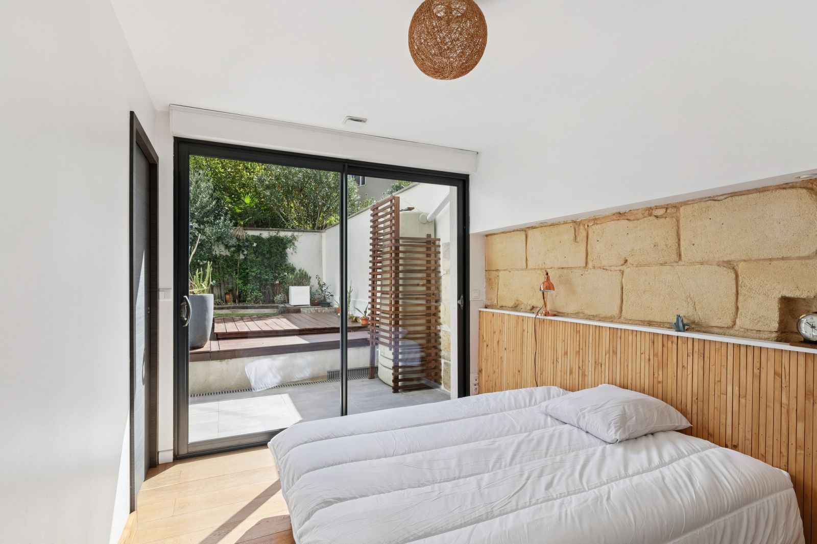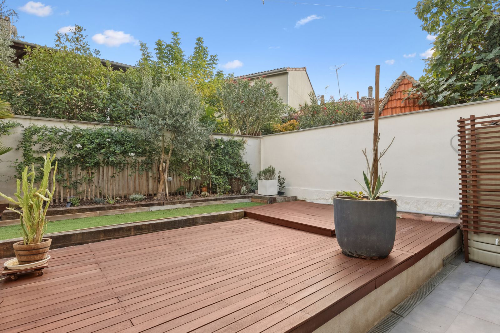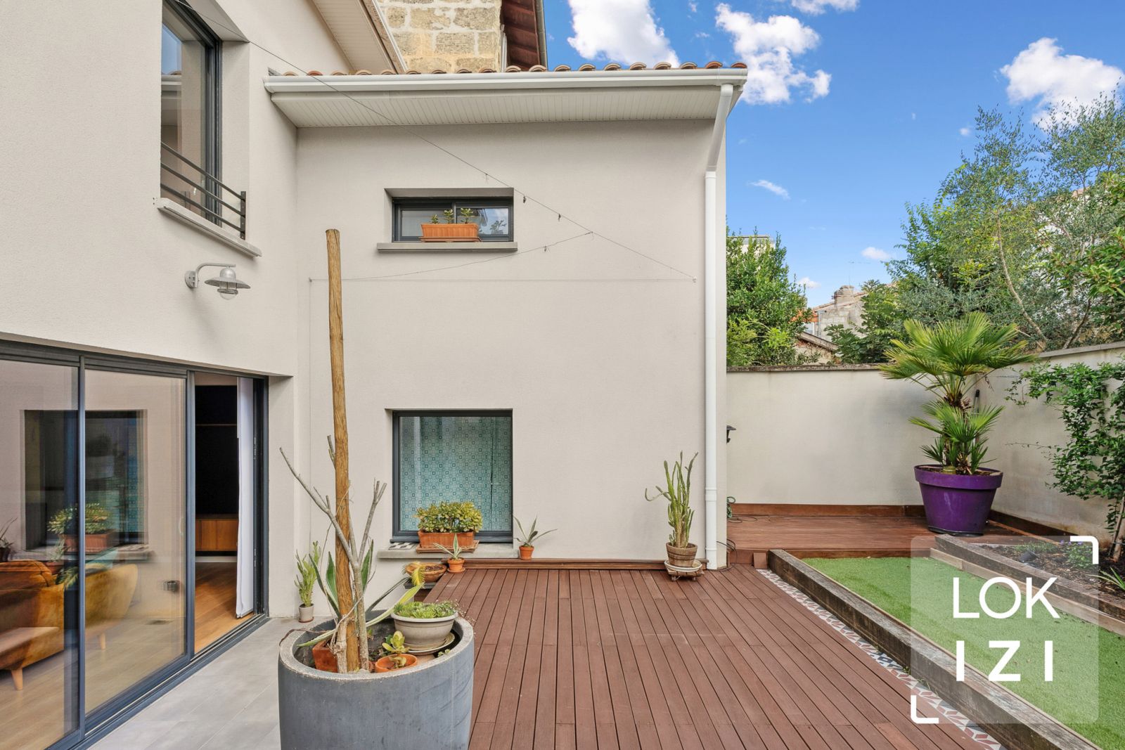 Bordeaux centre / Saint-Bruno / Mériadeck, proche bus, Tram A et tous commerces, notre agence LOKIZI - la location meublée vous propose cette spacieuse et charmante maison type échoppe bordelaise T6 et 140m², organisée sur 3 niveaux et prolongée d'une terrasse avec jardinet. Située dans une rue calme à faible circulation (entre les rues Judaïque et Georges Bonnac), la maison entièrement meublée et équipée comprend : Au rez de chaussée : entrée Au rez de jardin : cuisine ouverte aménagée et équipée, salon donnant sur jardin / terrasse, dégagement faisant office de buanderie (avec lave-linge + sèche-linge), WC, 1 chambre type suite parentale avec salle de bains (baignoire + douche) Au premier étage : 4 chambres avec rangements (dont 1 double couchage et 3 simple couchage avec bureau), salle de bains (baignoire) avec WC attenant. Combles aménagées en chambre avec bureau et rangements (accessible par escalier escamotable depuis palier).