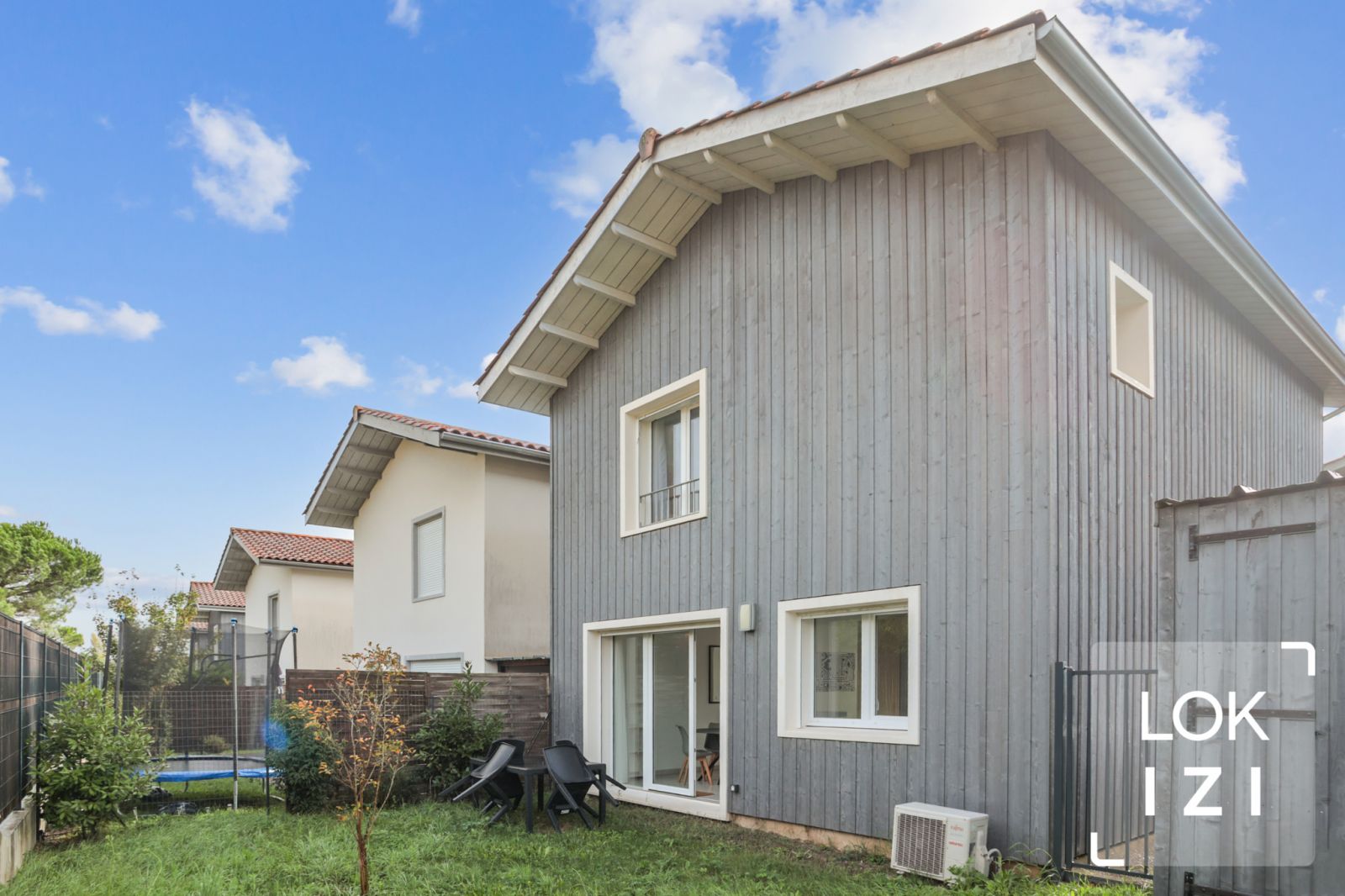 Artigues-près-Bordeaux, commune dynamique de la métropole en pleine mutation, dans un environnement résidentiel paisible rapidement connecté au centre ville de Bordeaux en 15mn (voiture et transports en commun), notre agence LOKIZI - LA LOCATION MEUBLÉE vous propose cette lumineuse maison contemporaine T4 de 85m² avec jardin. Organisé sur 2 niveaux, ce logement entièrement meublé et très fonctionnel comprend : - entrée avec placard - séjour traversant ouvert sur jardin, avec espace salon, poêle et espace repas - cuisine ouverte entièrement équipée (avec plaques de cuisson, lave-vaisselle, réfrigérateur-congélateur, four, kit vaisselle, petit électroménager et coin bar) - WC séparés (avec lave-linge) A l'étage : palier desservant 3 chambres avec placard-penderie (dont 2 en double couchage et 1 avec simple gigogne) + salle d'eau (douche) + WC séparés