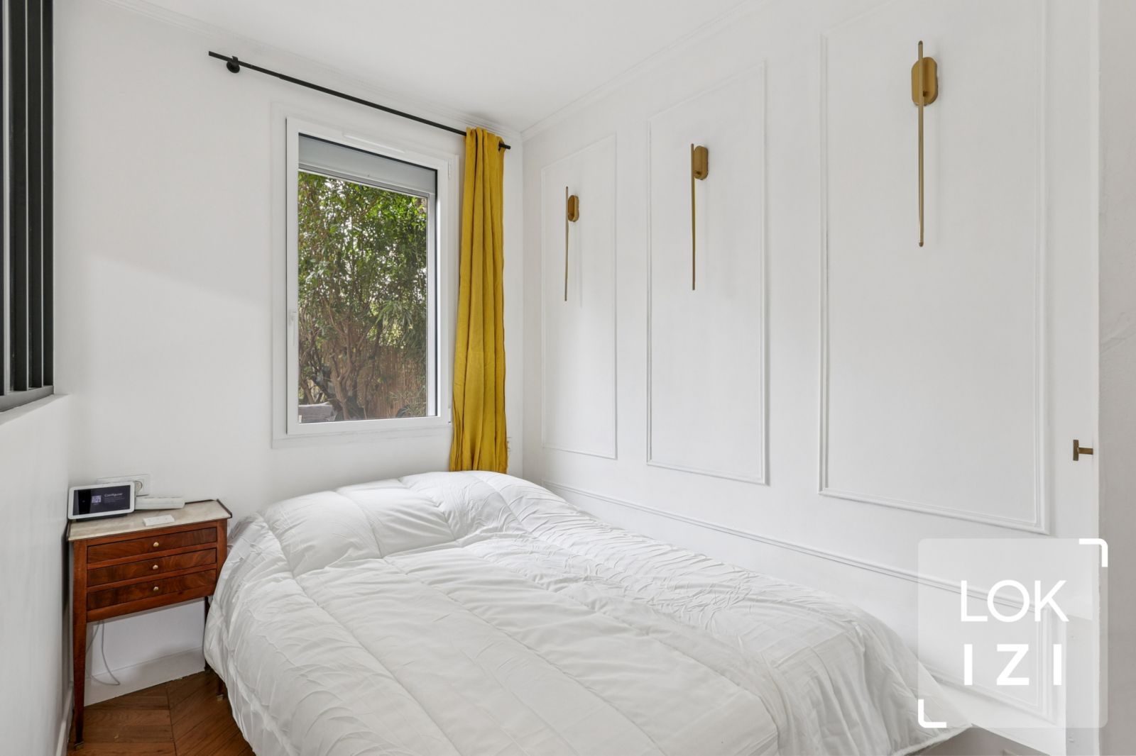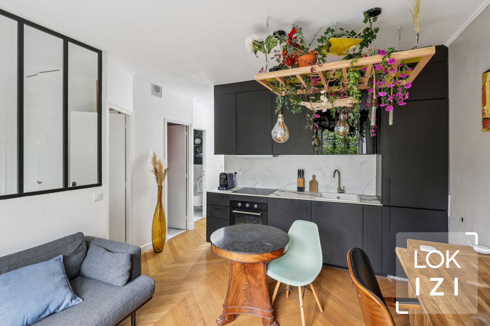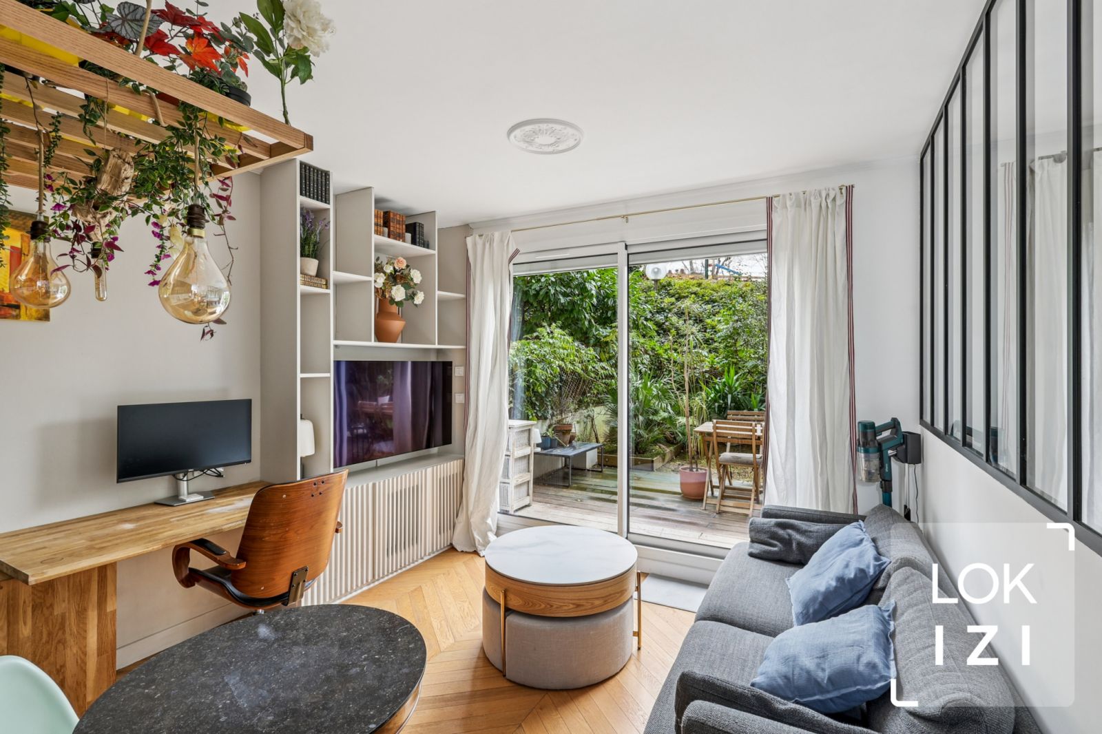 Paris 12 - Nation (rue de Picpus), proches gares de Lyon et de Bercy, avec toutes commodités du quotidien sur place, notre agence LOKIZI - la location meublée vous propose ce charmant et spacieux appartement de 28m² (type T1bis) avec jardin verdoyant prolongeant l'espace de vie. Situé au rez-de-jardin d'un immeuble de 4 étages, le logement entièrement meublé et équipé comprend : - entrée avec placards de rangement - séjour donnant sur jardin par grande baie vitrée, avec espace salon (TV), coin bureau et espace repas - cuisine ouverte équipée de plaques de cuisson, réfrigérateur-congélateur, kit vaisselle) - petite chambre (7,5m²) donnant sur séjour par verrière, avec lit double couchage et placard de rangement - salle d'eau avec WC - terrasse et jardin de 30m² sans vis-à-vis, avec mobilier extérieur.