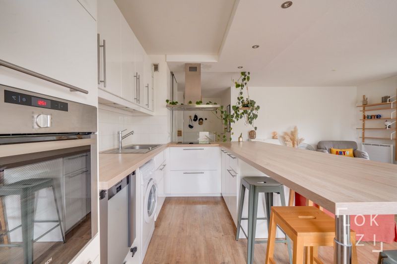 Proche du Tram A, dans un environnement arboré, lumineux appartement 3 pièces de 65m², entièrement meublé et équipé, avec balcon et parking, situé au 1er étage (sans vis-à-vis) d'une petite résidence récente de 2 étages, et comprenant : - entrée avec placard-penderie - séjour avec accès balcon et coin salon (avec TV) - cuisine ouverte sur séjour avec table haute de repas, et équipée de plaques de cuisson, réfrigérateur-congélateur, four, lave-linge, lave-vaiselle, petit électroménager - 2 chambres double couchage avec placard-penderie - salle de bains (baignoire) - WC séparés - balcon-loggia avec mobilier extérieur.