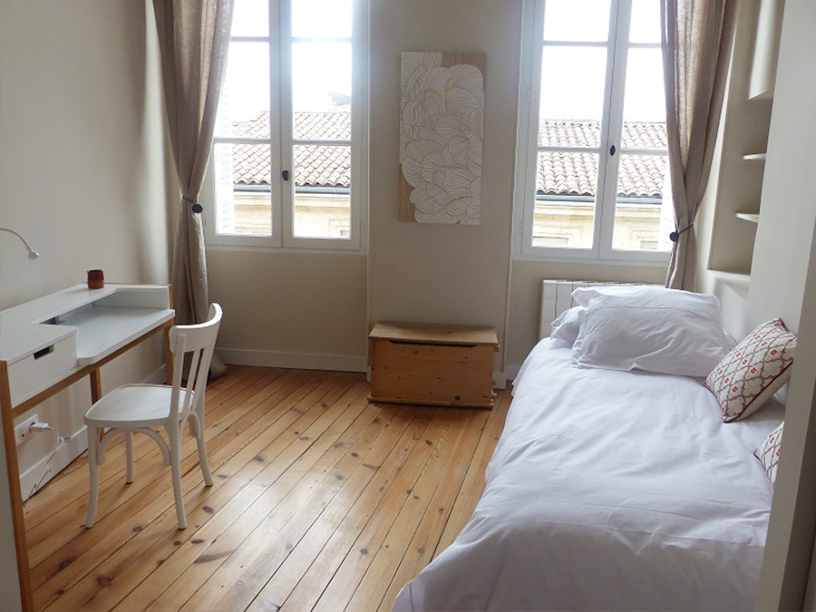 Saint-Michel, idéalement situé dans un quartier cosmopolite au coeur du centre historique de Bordeaux, avec toutes commodités sur place (à pieds), notre agence LOKIZI - la location meublée vous propose ce charmant et spacieux appartement T4 de 96m² avec vue sur toits de Bordeaux. Organisé sur 2 niveaux en duplex inversé, au sein d'un bel immeuble pierre récemment restauré, le logement entièrement meublé et équipé est agrémenté d'espaces de rangements et comprend : - au 1er niveau (3ème étage) : 3 chambres dont 2 en simple couchage avec bureau (sur rue) et une de type parental avec salle d'eau attenante (douche) + 1 salle de bains (baignoire + lave-linge + sèche-linge) +1 wc séparé - au 2ème niveau : spacieux séjour de 36m² avec cuisine semi-ouverte entièrement équipée (dont lave-vaisselle), et combles de rangements (de 14m²).