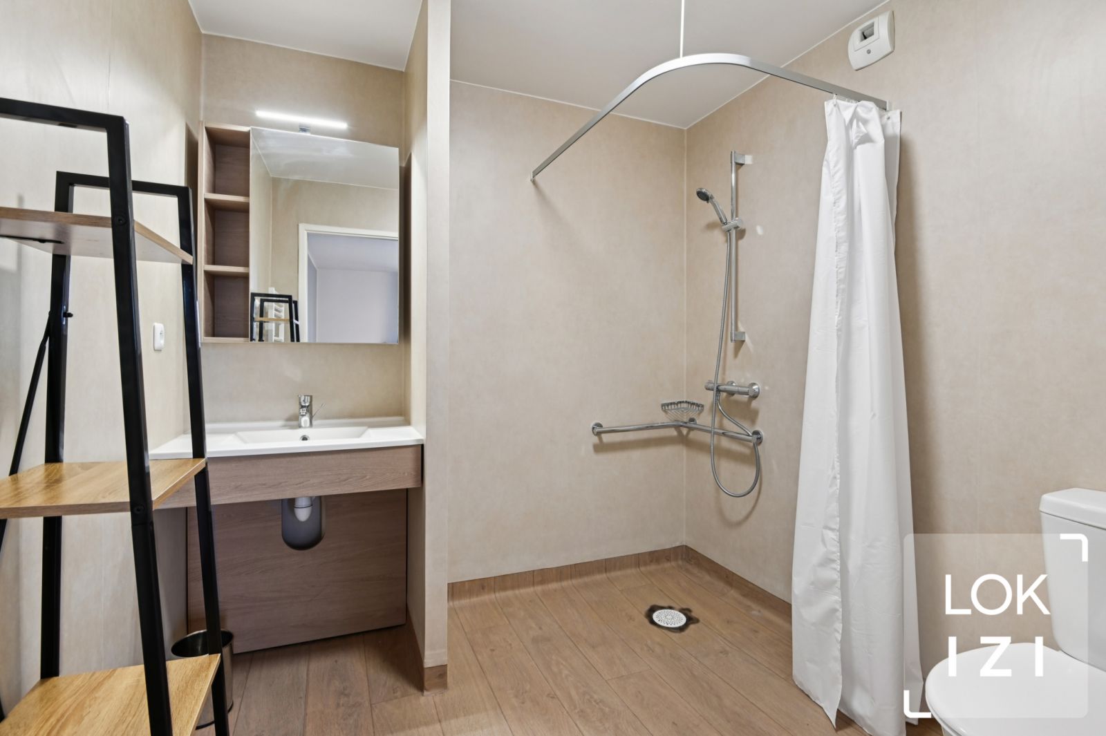 Le studio (fraîchement rénové) est entièrement meublé et équipé. Il se compose de : - entrée - pièce à vivre ouverte sur balcon avec espace salon (avec canapé convertible rapido + TV), espace repas, placard-penderie (avec lave-linge) - kitchenette équipée dans l'entrée (avec réfrigérateur, micro-ondes, plaques de cuisson, kit vaisselle, petit électroménager - salle d'eau avec douche PMR et WC.